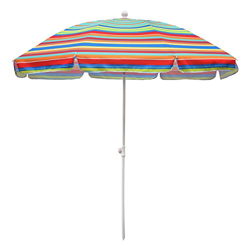 Sekey Ø 7ft Beach Umbrella Blue and Yellow stripe Outdoor Umbrella Blue and Yellow stripe Patio Umbrella Blue and Yellow stripe Market Umbrella with tilt and crank,100%polyster Round Sunscreen UV25+