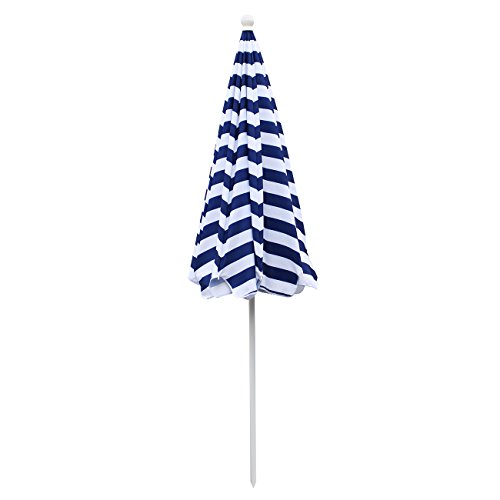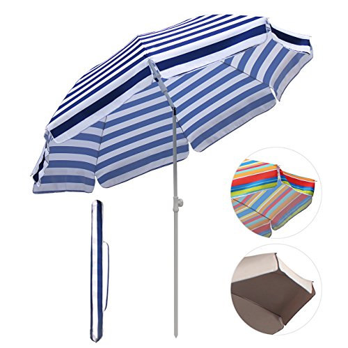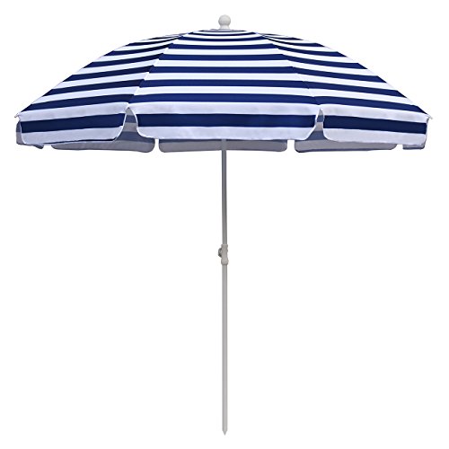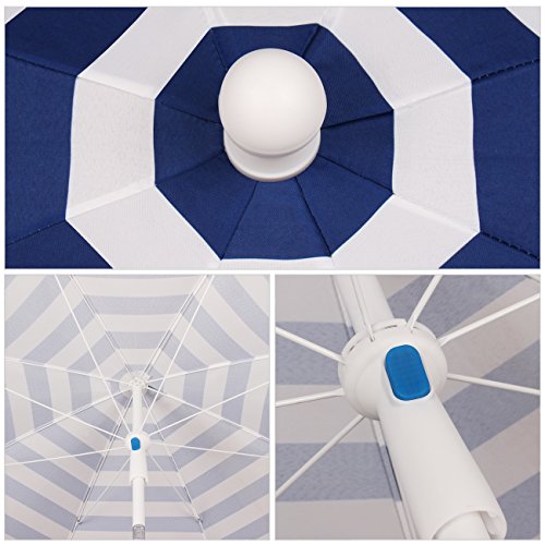 SekeyØ7ft beach umbrella blue white stripes outdoor umbrella blue white stripes outdoor patio umbrella outdoor market umbrella blue white stripes, with tilt and crank, round sunscreen UV25+