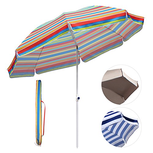 Sekey 7ft beach umbrella beige | outdoor umbrella beige | outdoor patio umbrella beige | outdoor market umbrella beige | patio table umbrella, with tilt and crank, 100% polyster, round sunscreen UV25+
