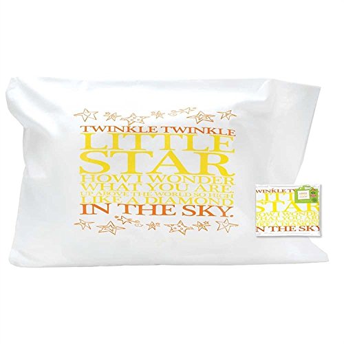 Studio : Jozie B Publisher : Jozie B Product Description Make bedtime fun for the kids with this glow in the dark pillowcase. Each word of the nursery song "Twinkle Twinkle Little Star" glows for an enchanting nighttime sight. The single pillowcase measures 30" long x 21" tall to fit a standard size pillow. Made of 60% cotton 40% polyester no-iron percale. Made in the USA. 0
