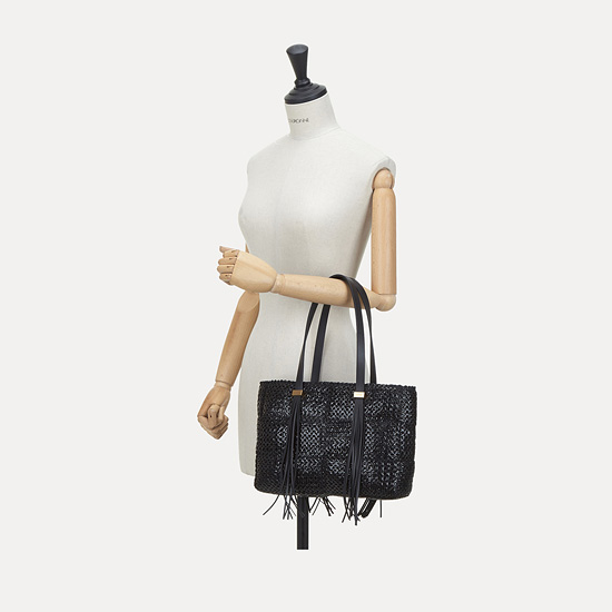 - 왕골 느낌의 나일론 신소재를 격자 메쉬로 엮어 에스닉한 감성을 표현.