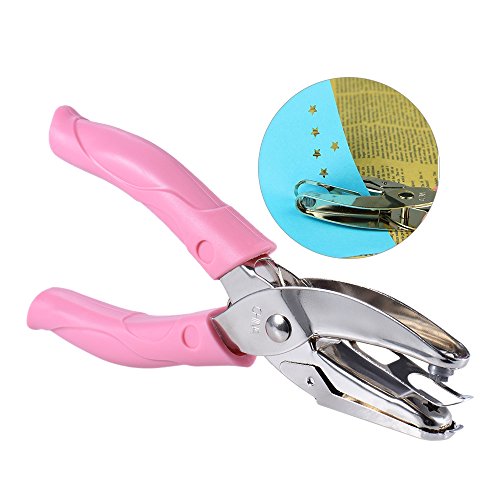 Hand-held 1-Hole Paper Punch Puncher Hand Tool with Pink Grip Single Star Shape Hole