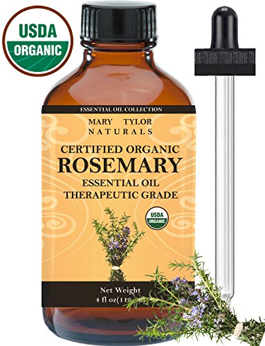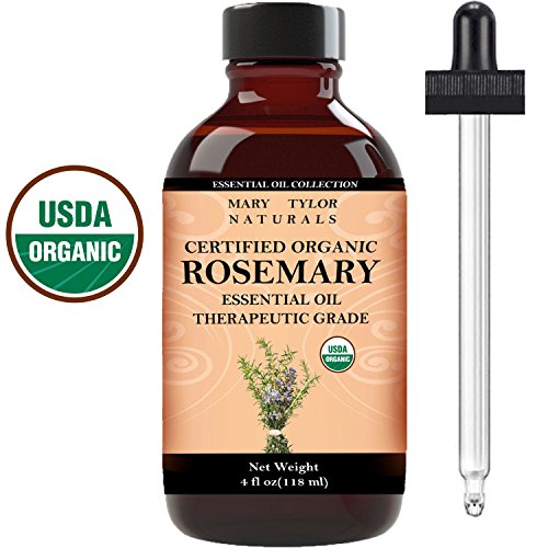 USDA Certified Organic Rosemary Essential oil, Large 4 oz Size, 100% Pure and Natural, Has a Clear, Fresh and Stimulating Rosemary Fragrance.