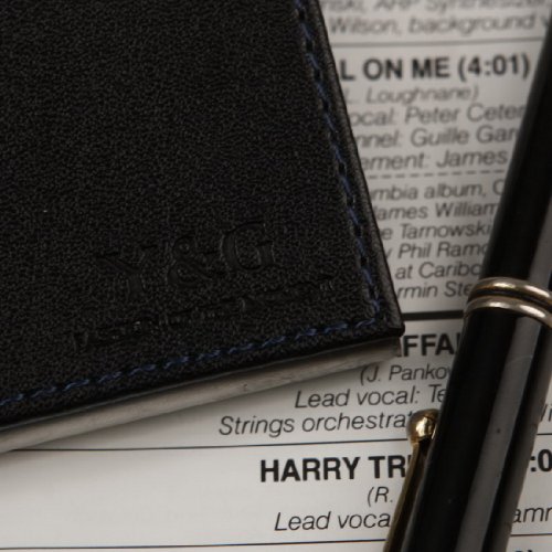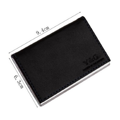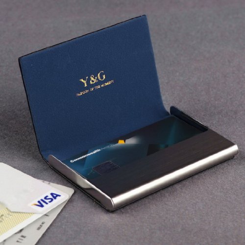 Blue leather business card holder business men Black Stainl?ess Steel Y&G leather card case with gift box CC1006 Blue