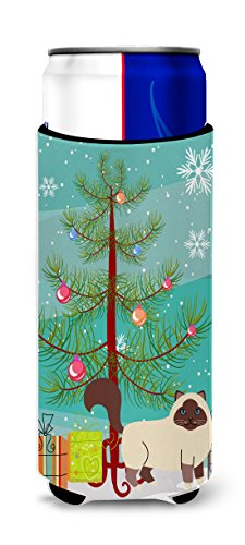 Caroline's Treasures Birman Cat Merry Christmas Tree Michelob Ultra Hugger For Slim Cans, Slim Can, Multicolor