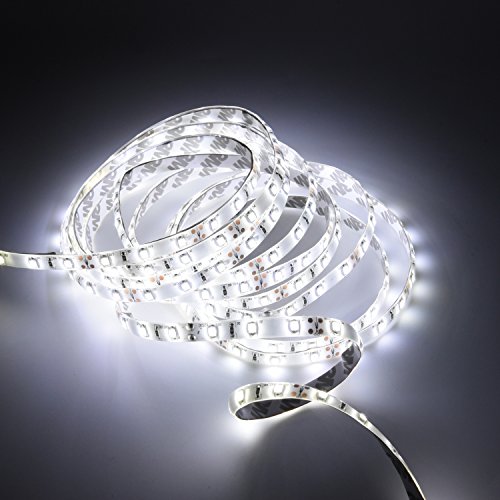 - Illuminate Your Beauty: High Cool White 300leds SMD 3528 Strip Lights, IP65 Waterproof Strip light uses ultra flexible PCB board as base and adopts SMD Chip LED as its luminous body. 60leds/m,16.4ft/roll,The brightness of this light bar is 6-7Lumen, Each LED light is transmitted and illuminated evenly
