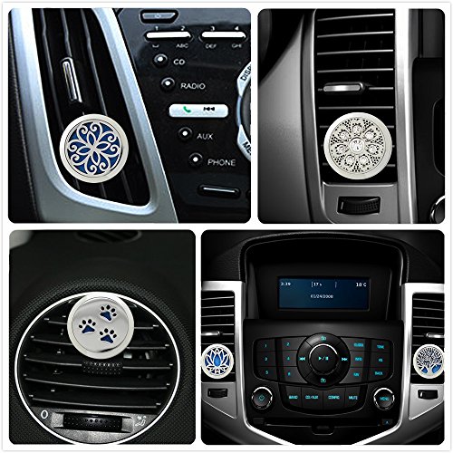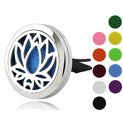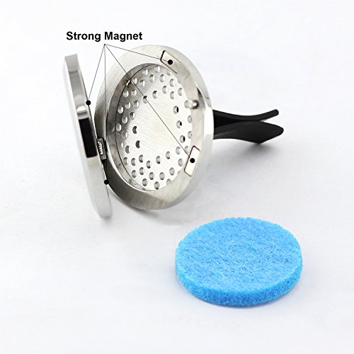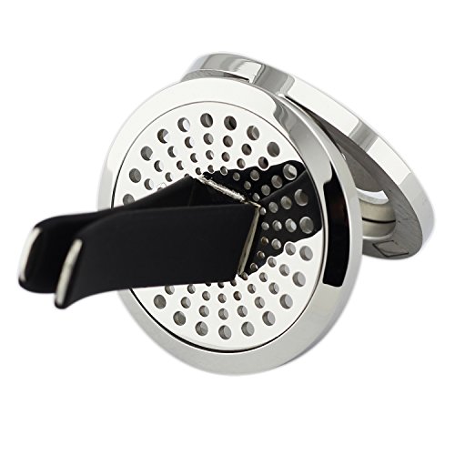 Car vent diffuser is well made by stainless steel_ 30mm(1 1/8``) outside diameter. Great way to keep yourself surrounded by the healthy scents of essential oils on the road. Comes with 10 color-coded pads to customize and change your fragrance choices_ more convenient and worthy than plug in styles and expensive car scents. There are many little vent holds across the back side instead of solid back_ so air flows through the vent and then through the diffuser to send out the aroma. Metal clip grips the vent well and never flop over even though violent shakes_ yet it is still easy to remove_ could last long time to use. Craftmanship is outstanding like a jewelry_ an excellent holiday gift for those who diffuse fragrance in their vehicles.