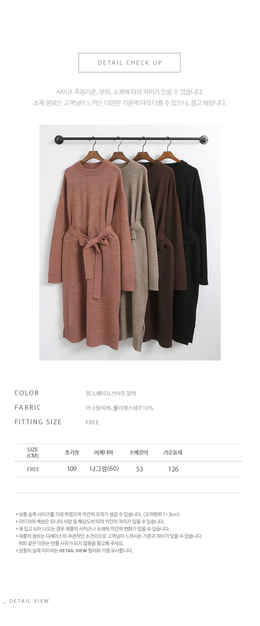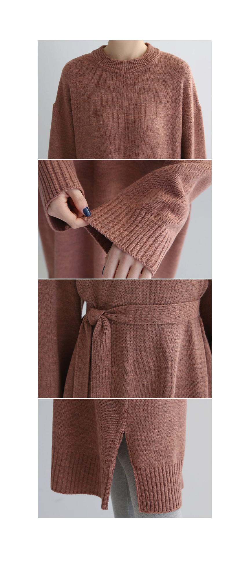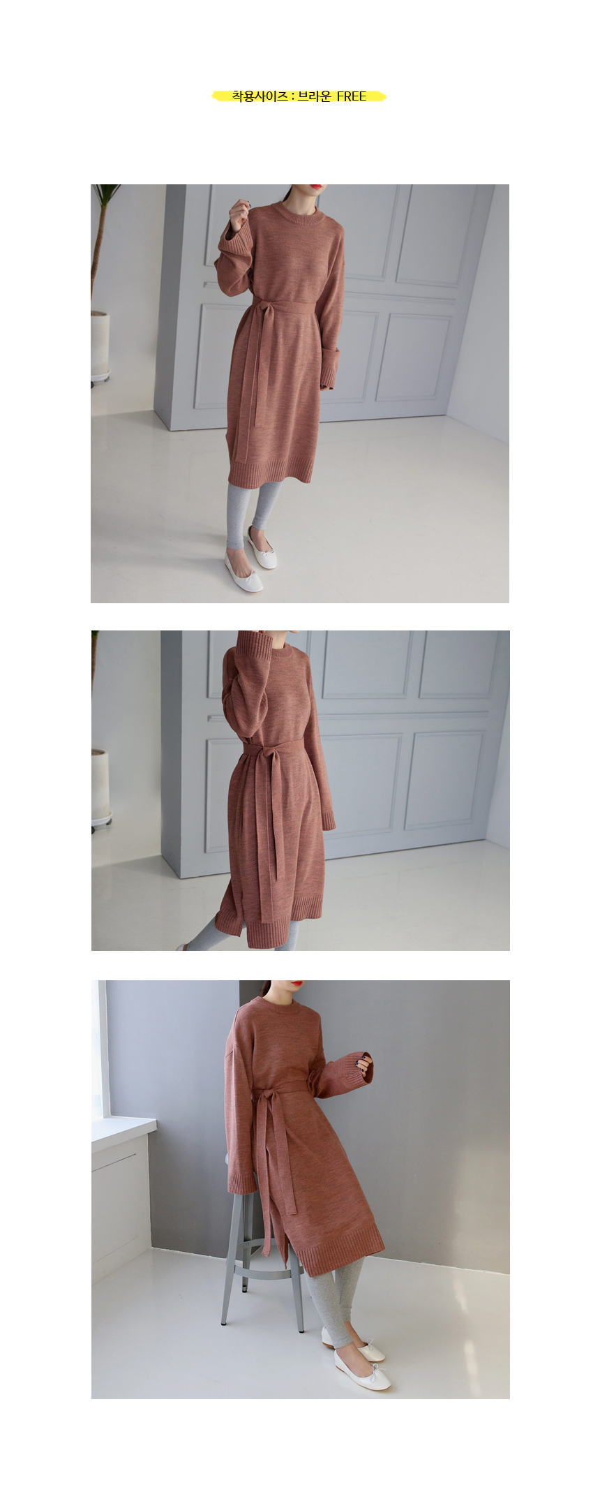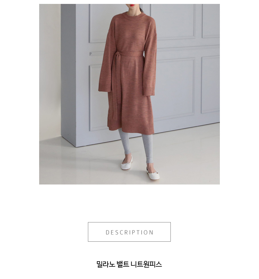 탄탄한 두께감으로 부드럽고 매트한 질감의 소재감이 심플하게 일자로 툭 떨어지는 롱한 길이감의 벨트 원피스예요 허리선에서 벨트를 묶어 멋스럽게 연출해도 좋고 벨트 없이 편안한 스타일로 입어줘도 좋답니다 톡톡한 소재감으로 간절기 단독으로 입기 좋은 니트 원피스예요 색상은 핑크, 베이지, 브라운, 블랙 사이즈는 FREE44~66반