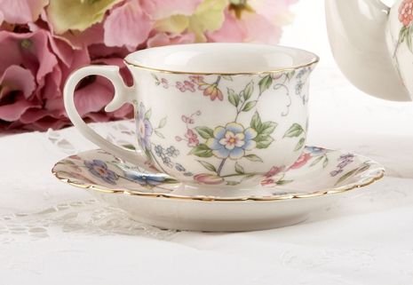 -. Title : 2.8" Porcelain Tea Cup/Saucer, Sweet Blossoms