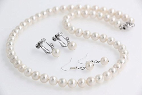 -. Title : 【品質保証】本真珠ネックレス&イヤリングセット 8mm 長さ50cm 冠婚葬祭用