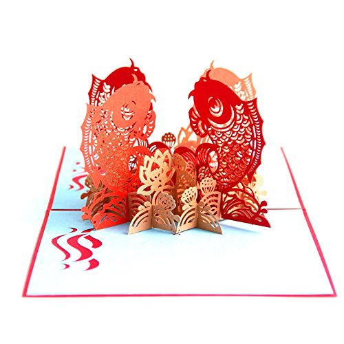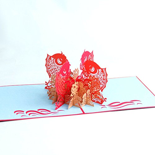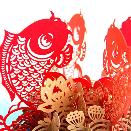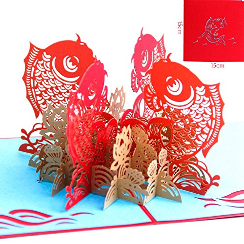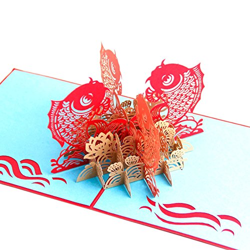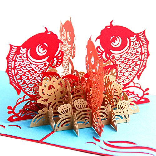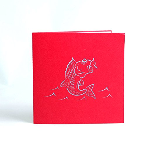 Paper Spiritz The Multi-color Koi Fish 3D Pop up Greeting Card Postcard Matching Envelope Laser Cut Handmade Happy New Year Birthday Post Card Spring Festival Valentine's Day Gift(Pack of 1)
