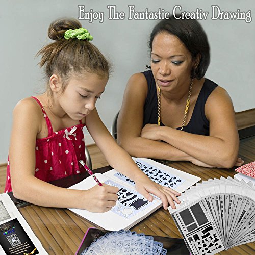 - 👍【SAFE TO USE and PERFECT GIFT】✍: -Our bullet journal stencil set use reusable Eco-friendly PET material and the grinding process ensure the inside and outside edges not sharp which is safe to you and your kids. Our bullet journal supplies are perfect gifts for kids, students, teachers, travelers and planners to make drawings and designs, take notes in class, make personal plan and DIY own diary. You can creatively mix and match stencils in a short time.