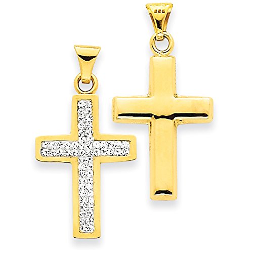 Lex and Lu 14K옐로우 골드 리버시블Swarovski Elements라틴 크로스 펜던트xr913