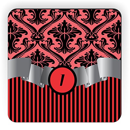 Rikki Knight Letter "I" Initial Red Damask and Stripes Monogrammed Design Square Fridge Magnet