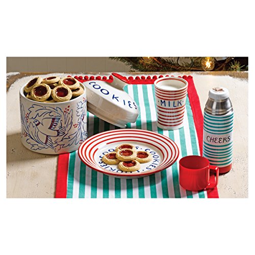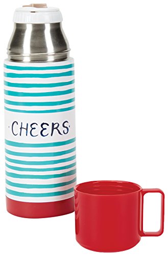 C.R. Gibson 13.5 Ounce Stainless Steel Thermos, By Molly Hatch, Hand Painted With The Saying "Cheers", Measures 2.6" D x 7.75" H - Holiday Stripes