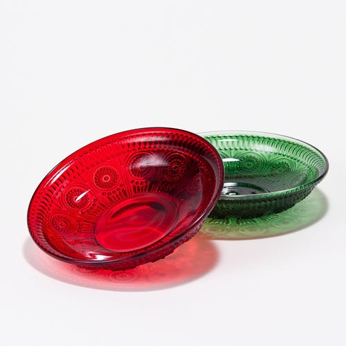 - Vintage Looking Retro Christmas Red and Green Glass Bowls 7 inches in Diameter Set of 2 (1 red and 1 green)