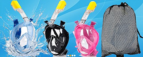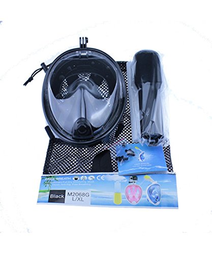 Circuit+ Easy Breathe Full Face Snorkel Mask With FREE Ear Plugs,180° Panoramic Full View Diving Mask,Anti-Fog,Anti-Leak Snorkeling Technology,Adjustable Head Straps - Adults,Youth & Kids (BK-L-XL)