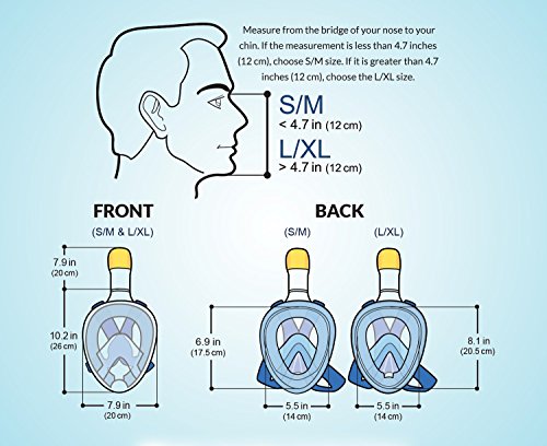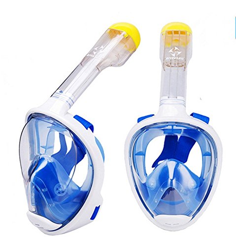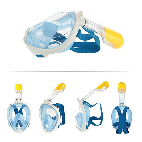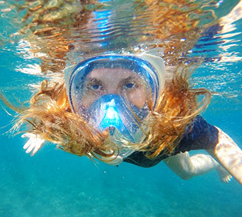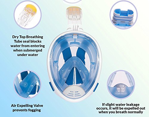 Circuit+ Easy Breathe Full Face Snorkel Mask With FREE Ear Plugs,180° Panoramic Full View Diving Mask,Anti-Fog,Anti-Leak Snorkeling Technology,Adjustable Head Straps - Adults,Youth & Kids, (Blue-L-XL)