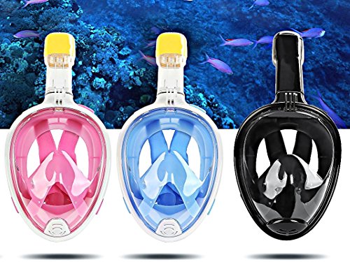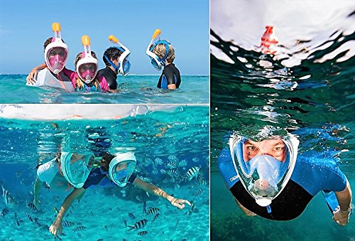 Circuit+ Easy Breathe Full Face Snorkel Mask With FREE Ear Plugs,180° Panoramic Full View Diving Mask,Anti-Fog,Anti-Leak Snorkeling Technology,Adjustable Head Straps - Adults,Youth & Kids (Pink-L-XL)