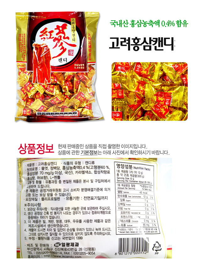 水飴、ジョンベクダン、紅参濃縮液(固形分60%、紅参成分70 mg/ g以上、韓国産)0.4%、