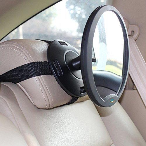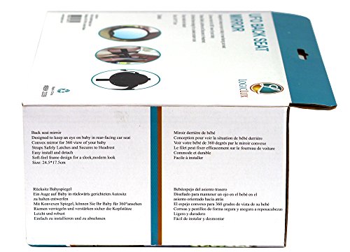 - Feature : Easy Installation - High quality straps quickly and securely attach to headrest / Exceptional Quality - Light weight yet durable unique large oval design with shatter proof clear reflective mirror for optimum viewing of your infant / Convex mirror for 360 view of your baby / 100% SATISFACTION GUARANTEE - No questions asked money back guarantee