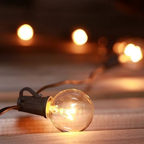 50FT G40 Globe String Lights is consistent of 50 clear bulbs. Candelabra Screw Base E12. Even quality high bulbs are bound to be broken one day and if one bulb burn out, others will also be working.