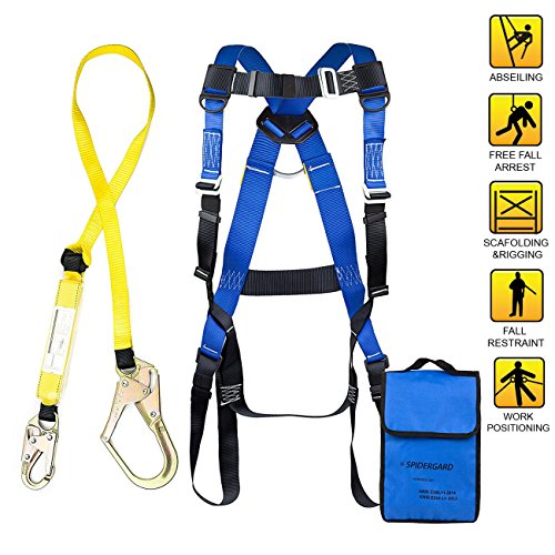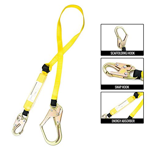 Spidergard SPKIT02 Three D-Ring Full Body Fall Protection Safety Harness Combo with 6ft Shock Absrober Rebar Hook Lanyard (Yellow, L-XL)