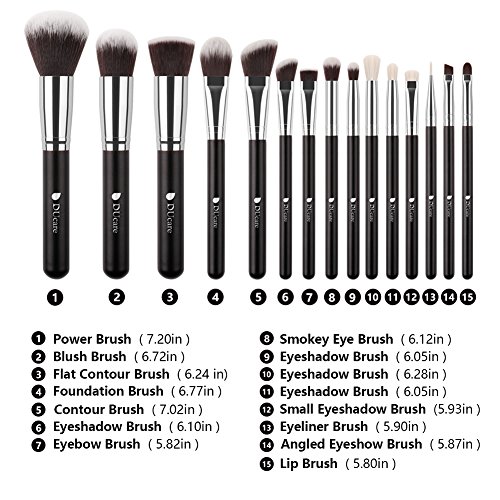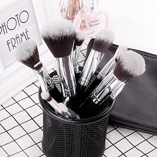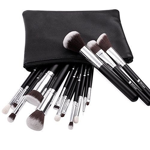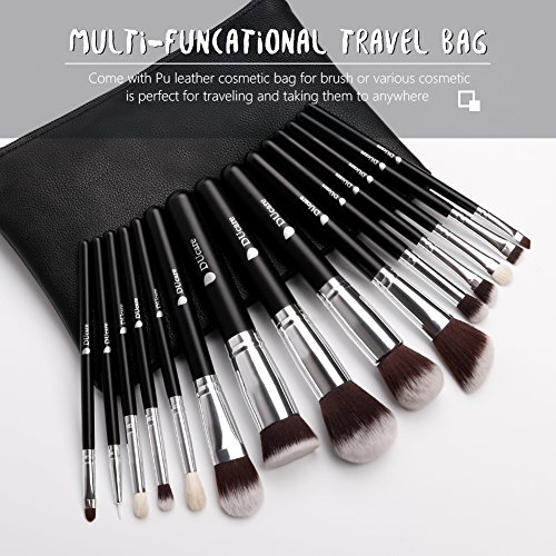 DUcare Makeup Brushes 15 Pcs Natural Synthetic Professional with Leather Case(Sliver and Black)