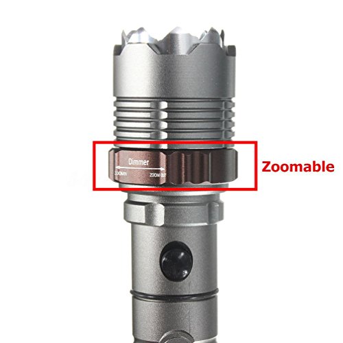 Product DescriptionBulb: Elfeland T6 LEDSize (mm): 170 x 38 (bezel) / 30 (body)Max output: 20000 lumens (MAX, when using 18650 battery) Battery Type:1x18650(included ) Package Content: 1 x LED T6 Zoomable Flashlight 1 x 18650 Battery 1 x charger (us plug)0