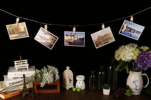 String Lights-SMAZ LIFE LED Photo Clips 15 Feet T2C Battery Operated rope lights Warm Light, Perfect Room Decoration/Christmas/Party Photo Holder with Clips Gift Box Package
