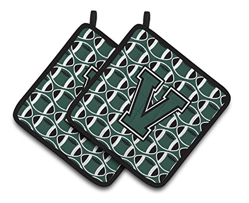 Caroline's Treasures Letter V Football green & White Pair of Pot Holders CJ1071-VPTHD, 7.5HX7.5W, Multicolor