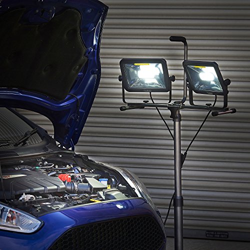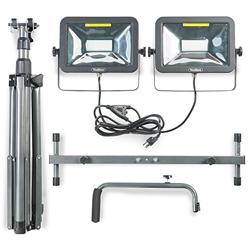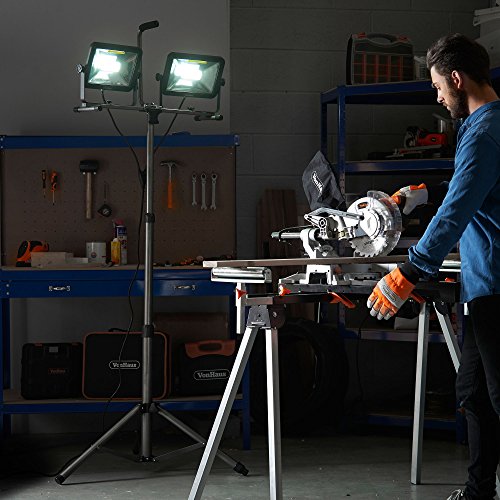 VonHaus Two-Head 10000 Lumen LED Work Light with Detachable Metal Lamp Housing, Metal Telescopic Tripod Stand, Rotating Waterproof Lamps and 8.2Ft Power Cord