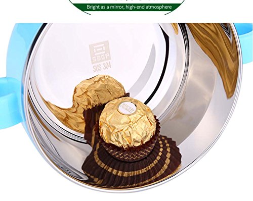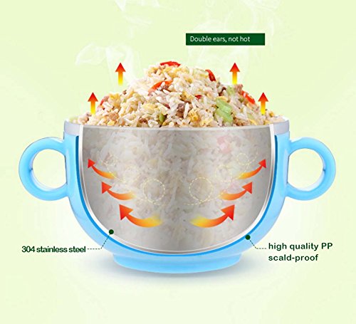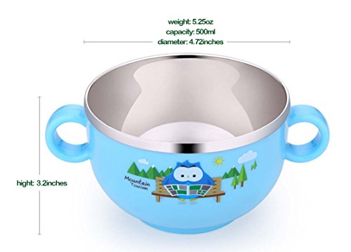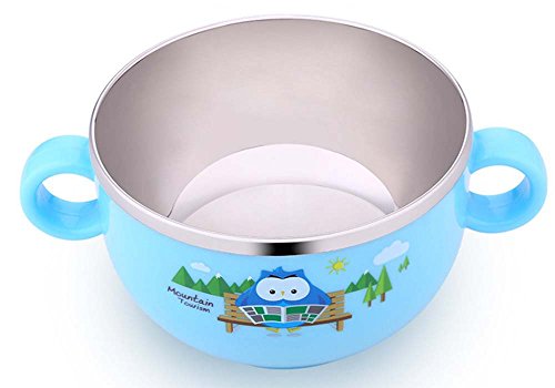 inDomit Anti-Scald Bowl Double Layer Stainless Steel Feeding Bowl with Double Handle for Kids Toddlers - Blue