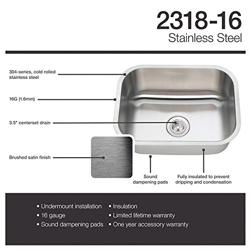 2318 16-Gauge Undermount Single Bowl Stainless Steel Sink