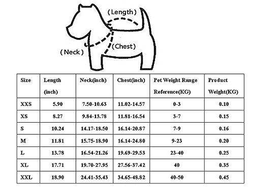 -. Feature : SIZES: Available for 7 sizes, ranges from XXS to XXL. Please check the Size Chart again to decide which size your beloved dogs would need. This is because, besides its Inner Structure and padding Material, we have UPDATED the size details of this life jacket as well to ensure its Ripstop Feature, Strong Buoyancy and Size Accuracy. / COLORS: Available in 6 optional colors. Reflective feature and extra bright safety colors to enhance visibility to keep pets safe in or around the water. / SAFETY: Built with extra padding to enable strong buoyance and safety guarantee. Heavy-duty yet more comfortable Velcro fastening system around the belly and neck to keep securely fastened; / CONVENIENCE: Convenient top grab handle for easy rescues by hand or boat hook; D-ring for a leash; Adjustable nylon straps and quick-release buckles ensure the perfect fit. / Please kindly read the HOW TO MEASURE & SIZE CHART illustration in the product pictures in order to get a right size. If measurement is between sizes, we recommend larger size.Chest Girth should be the most important and decisive measurement to be considered.