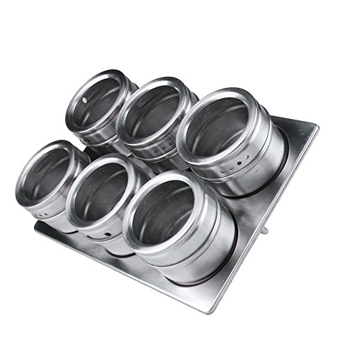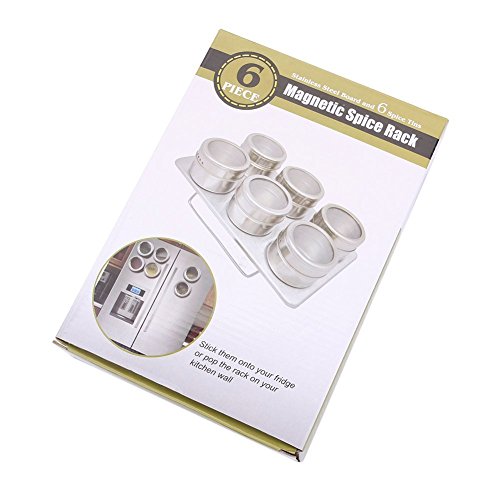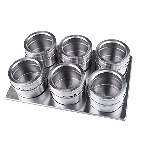 Magnetic Spice Tins, SEANUT Multi-Purpose Stainless Steel Spice Jars Round Storage Spice Rack Set, 6 Jars, Clear Shift and Pour Lid