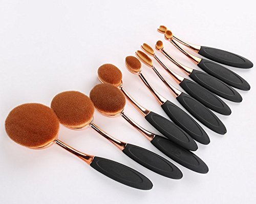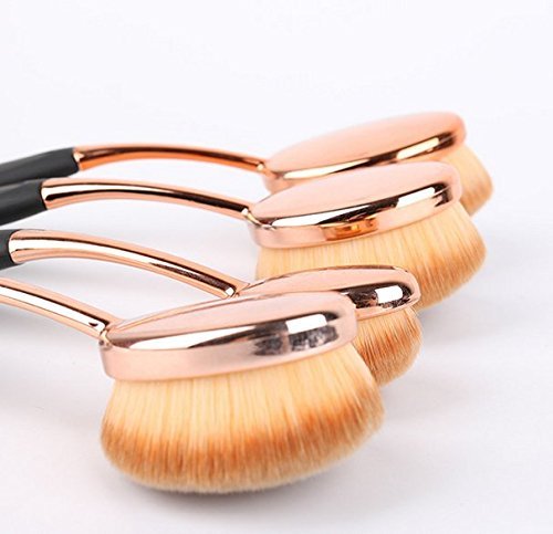 Three Legs Makeup Brush Set, 10Pcs Rose Gold Oval Super Soft Professional Toothbrush Shaped Design For Foundation, Concealer, BB cream, Powder...