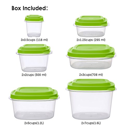 ☆ Portion Control: You will receive six different size containers, included: 2x7cups(1.6L), 2x5cups(1.2L), 2x3cups(708 ml), 2x2cups (500 ml), 2x1.25cups (295 ml),3x0.5 cups (118 ml).