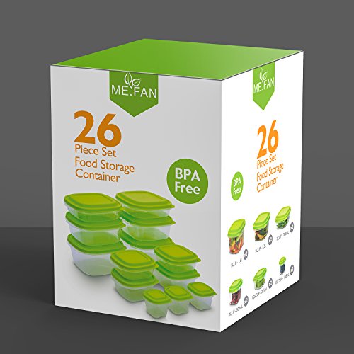 ME.FAN Food Storage Containers, BPA Free - Reusable - Multipurpose Use for Home Kitchen or Restaurant 26-Piece Set, Gress Green