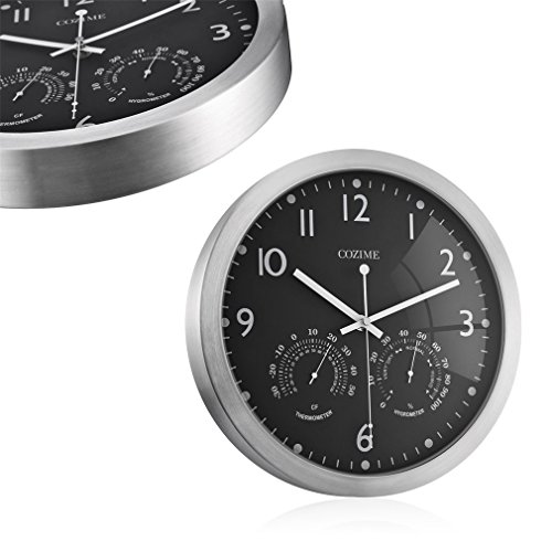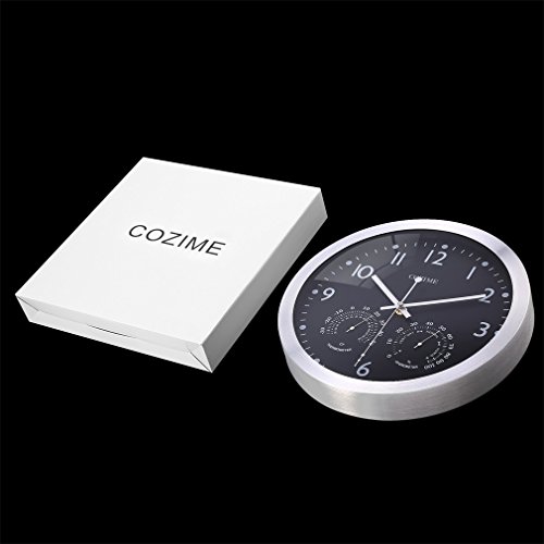 -. Title : COZIME 12 Inches Non-ticking Wall Clock with LCD Calendar, Indoor Temperature, Week Multi-Function Display PVC Acrylic Mirror Aluminum Silvery Frame Decor Clock