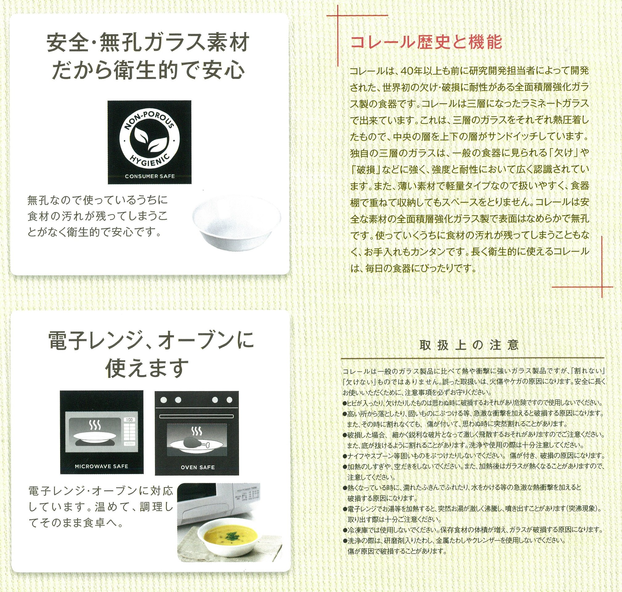 ● Correl which can be used long and hygienically is perfect for daily dishes