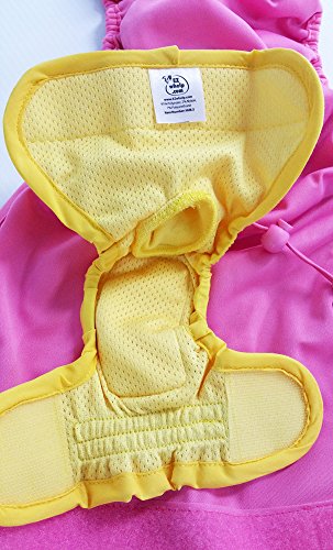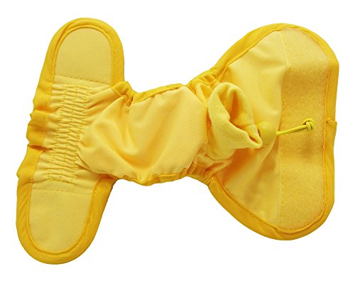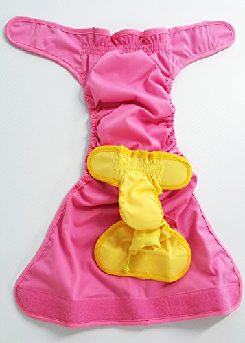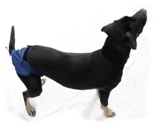 Product Description EZwhelp diapers wrap around and through your dog's hind quarters. Velcro capped wings reach up and around her waist to fasten above. The PUL outer lining is waterproof and fitted with an absorbent internal pad. Elastic sewing precludes leakage and ensures a snug fit. Internal mesh fabric draws moisture away from your dog. A ribbed knit collar adds comfort and flexibility to the tail hole. The diaper is easily fixed to the tail with a cord lock. 0