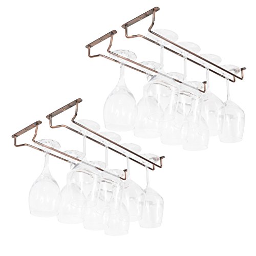 WALLNITURE Wine Glass Under Cabinet Stemware Rack Steel Oil Rubbed Finish 17 Inch Set of 4