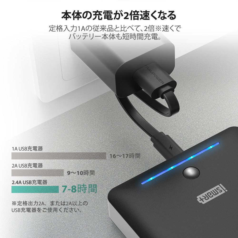 Corresponds to 2A input, it is safe to charge quickly even when you notice shortage of charge