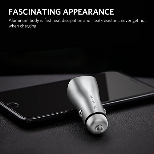 Yoobao 2.4A Dual USB Car Charger Adapter With Car Cigarette Lighter Socket Aluminum Housing Aluminum body provide fast heat dissipation,and anti-scratch ABS PC materia is Heat-resistant and fire-retardand, so yoobao car charger never get hot when charging 3A Fast Charging Charging up to 75% faster than normal USB car charger, just 1h for your iPhone 7 to charge fully. Automatic stops charging when overcharging or lower voltage. Trickle Charge New trickle charging technology, automatically switch to trickle charge mode when batteries is almost full. Not over charge, not false-charge. Dual USB Port Dual USB Port can charge 2 devices at the same time in all types of vehicles, and is compatible with iPhones, iPads, Android phones, tablets, MP3 players, camera, music players, digital cameras, power banks, dashboard camera, Bluetooth speaker etc. No need to worry about no charging ports. Stable Charging Anti-Slipping Design, adapt to the car cigarette lighter interface size, continuous charging even in the shaky road section. 9-Way Protection Input over-voltage protection, input over-current prootection, output over-current protection, oupput over-voltage protection, voltage-drop compensation, anti-static, intelligent current-matching, short-circuit protection, and quick conductive. Specification Color: Sliver Input: DC 12V~24V/2.4A USB Output - 5V/3A Package Contents: 1x Dual USB Car Charger 1x User Manual 12 Month Replacement Warranty and Friendly Service. Please reach us with any question or concern - We are here for you. 0