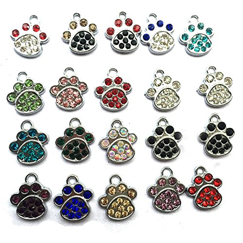 DOLON Brand 20pcs Silver Tone Animal Tiger Paw Dog or Cat Foot Print Charms Assorted Colors DIY Pet Earring Bracelet Accessiries