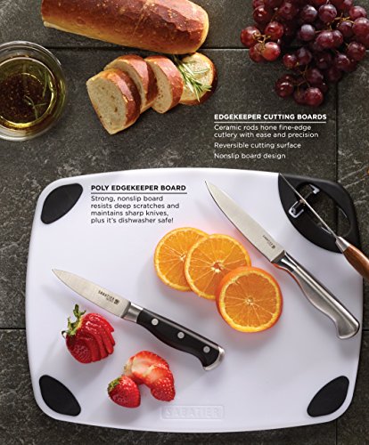 Sabatier Non-Slip Poly Cutting Board with EdgeKeeper Pop-Up Sharpener, 11-Inch-by-14-Inch