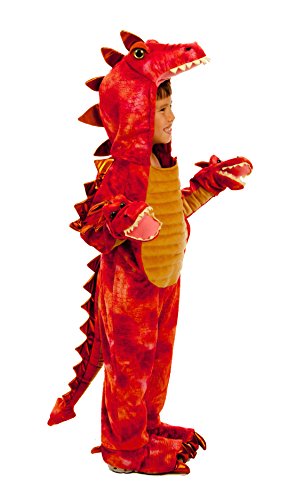 -. Feature : One-piece jumpsuit with attached hood and puppet-like dragon hand covers / Red and orange embossed fabric with black and orange spikes / Costumes are sized differently than apparel and styles vary; important to consult P.R.Incess Paradise size chart before making selection / Available in adult sizes / P.R.Incess Paradise creates top quality costumes for dress-up and costume occasions, in sizes from newborn to adult