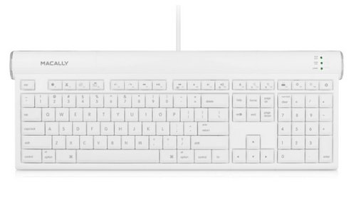 Macally MKeyE is a stylish full-size USB keyboard aiming to provide Apple-like typing experience at a budget price. The Low profile tactile keys provides comfort and ease typing but also being responsive and punctual. The familiar Mac layout give all the keys you are used to, plus 15 shortcut keys for making your Mac life easier.