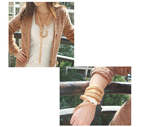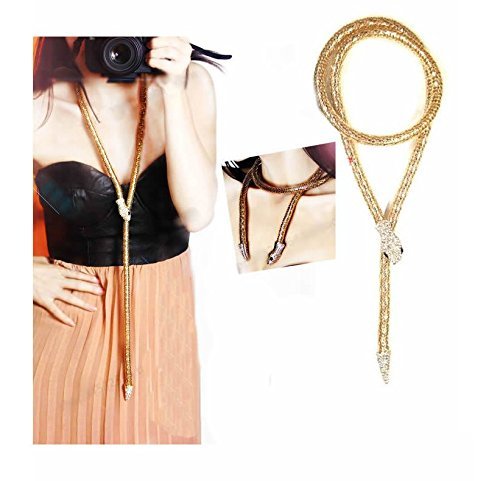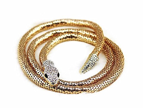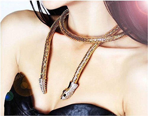 -. Feature : Versatile - can be used as upper arm cuff, necklace and fits choker bracelet scarf holder twistable shape design as waistband belt. / Superior Quality - The metal made of strong and durable alloy, the magnet attached to the head of the snake makes the piece versatile, as you can attach it to any part of the snakes body. / Personalized snake collar for women, chunky curved stretch snake nightclub, Gothic style, Festival's decoration. / Fashionable - Retro punk jewelry accessories is a great complimentary accessory to the Roman costume used at a theme night event. / Length: 41.3 inch real snake shaped necklace.